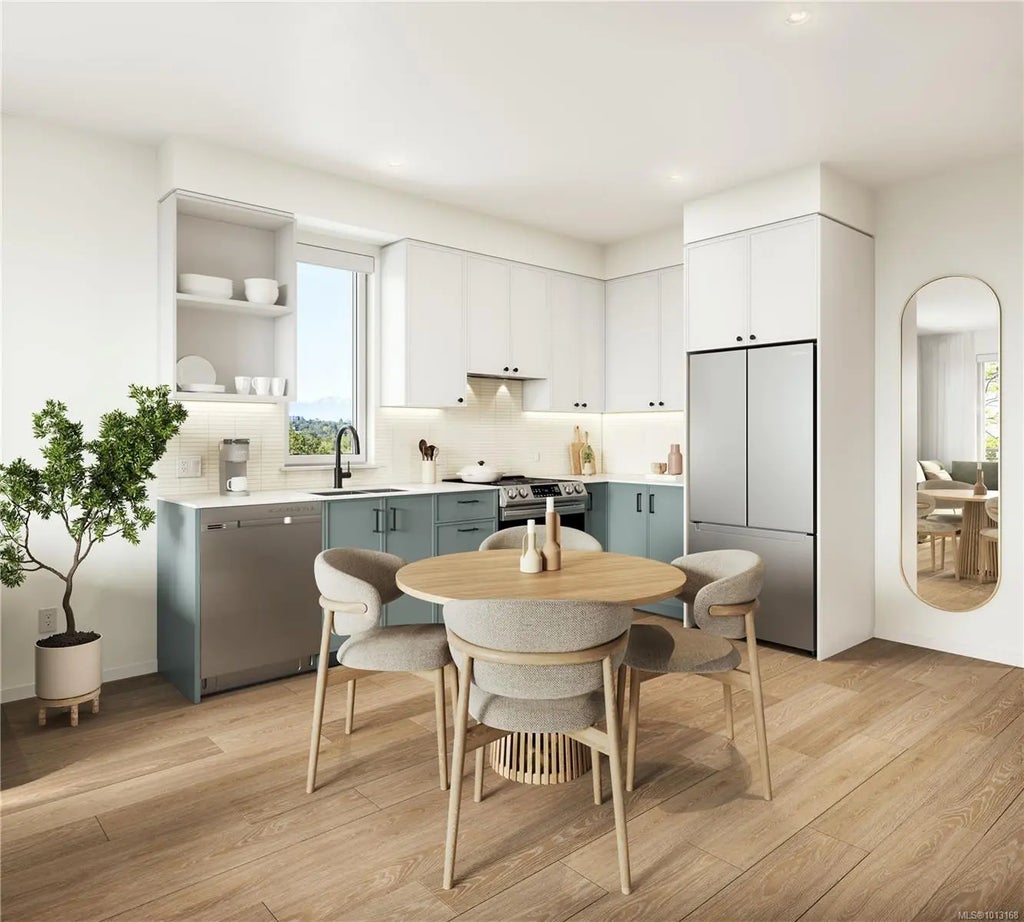 Nestled in the urban neighbourhood of the Shelbourne Valley, Oak & Stone by Abstract Developments sets the standard for vibrant West Coast living. This light-filled, thoughtfully designed 1 Bed + Den, 1 Bath home features over-height ceilings and expansive windows across 546 sq ft of open living space & a 152 sq ft patio. The bright, airy kitchen with quartz countertops, under-cabinet lighting, soft-close cabinets, matte black hardware, and premium stainless-steel appliances is perfect for entertaining. The in-home flex space provides versatile options to suit your lifestyle. Contemporary interiors offer two colour palettes, luxury vinyl plank flooring, and cozy broadloom carpet in the bedroom. Includes one parking space and cycling-friendly amenities, including secure bike storage with e-bike charging. Centrally located, just minutes from parks, schools, beaches, and essentials. Price + GST, first-time buyers are eligible for a rebate.