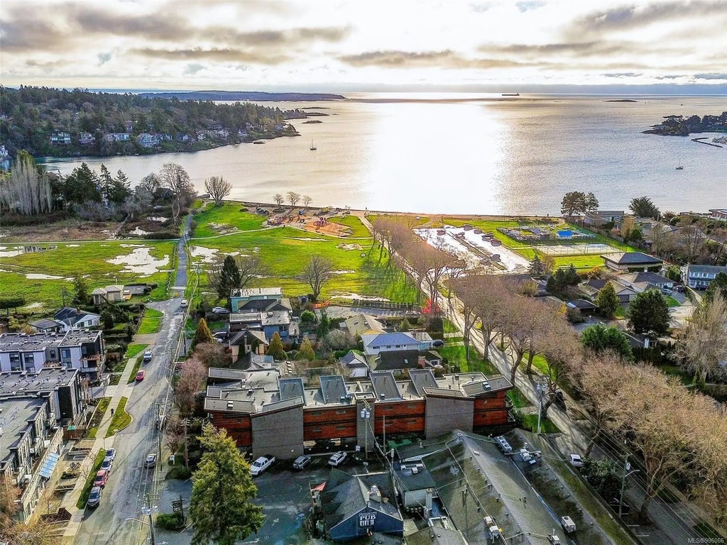 Direct and unobstructed OCEAN VIEWS from all principle rooms in this bright & modern 2 bed, 2 full bath condo. The "Promenade" is situated in the heart of the Cadboro Bay Village only a few steps from the sandy beach @ Gyro Park. Watch the Red Octopus from your South Facing Balcony. Inside find an amazing floorplan with the bedrooms on opposite sides of the open Kitchen & living room. Features include H/W flooring, quartz countertops, wood cabinets, S/S appliances, in-suite laundry, a fresh coat of paint, 9' ceilings & heated tile floors in both bathrooms. A gorgeous ensuite off the Primary bedroom and convenient in-suite laundry make this a comfortable place to live. Also, 1 covered parking stall and a secure storage locker are included. Walking distance to the University of Victoria and so many other amenities like Pepper's Foods, Smuggler's Cove Pub, and much more. Pets and rentals allowed.